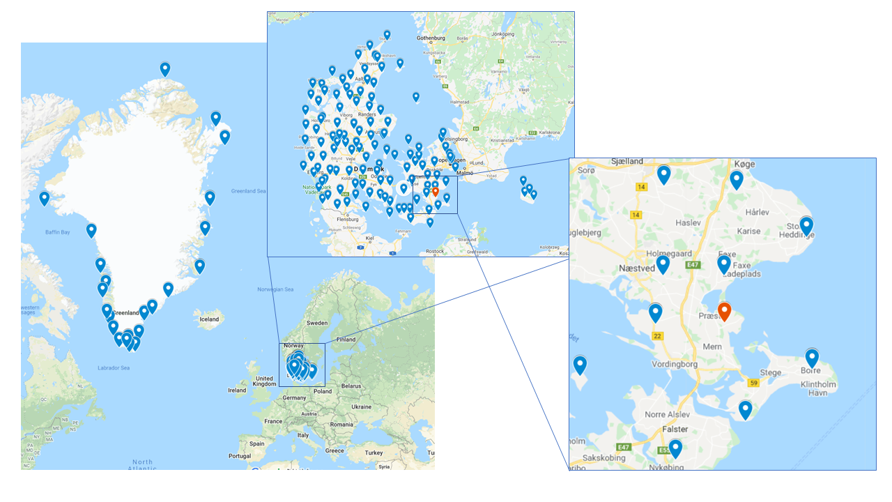Figure 1: Stations available from the Danish Meteological Institute (DMI)